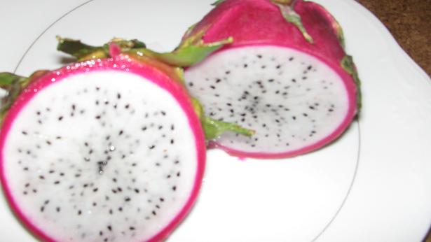 ちょっと変わったフルーツを食べました。 ハネムーンナナ ドラゴンフルーツの中身白バージョンです。 (中身が真っ赤なのもありますよね。) 甘~い名前ですが、味は極サッパリ 梨にキーウイを混ぜたような・・・ 健康栽培 お元気です果 「超高栄養」「超高波動」「超高級」 と、書いてあった。 こんなスゴイもの食べたので 今日も元気に働く私です