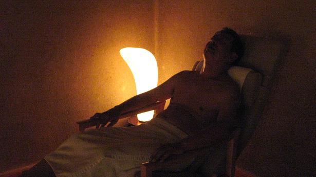 湯河原温泉の効能を体を張って実証している 観光協会の渡辺誠司さん53歳独身 3日目 9月21日 目を見張る効果ですよね。 本当に私も毎日「ええっー」って驚いております。 もうぴかぴかつるつるです ただし温泉にキズの部分を浸らせて 長ーく入っております 「あ~ 今日は独歩の湯の手伝いで疲れた~」 と言って湯上り処の デンマークの椅子に身をあずけ 堀木エリ子の照明の中 くつろぐ渡辺さんでした。
