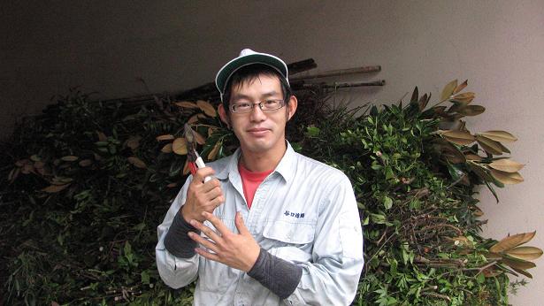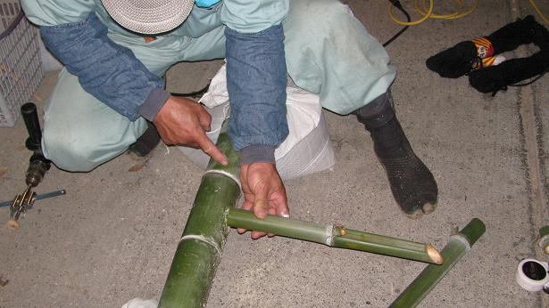 植木屋さんが筧を制作しておりました。 京都の植木屋さん こんな立派な後継ぎもいらっしゃるんです。 31歳、独身 不動産屋に就職して億単位の物件を扱っていましたが 家を継ぐ決心をされたそうです。 自分の作ったものが出来上がって目に見えるのが 充実して楽しい仕事だそうです。 植木職人の辛い所ってどんな所ですか? 「虫です。」 チャドクガにやられた事もあり、虫が苦手だそうです。 これは筧(かけひ)と言います。 柄杓(ひしゃく)も本当に美しいですね。 1F大風呂の間の椅子から見えます。