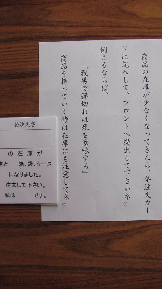 こんな用紙を作って倉庫に貼っておく事にしました